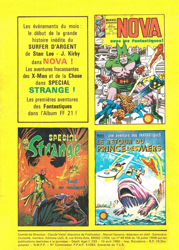 | Un des grands plaisir des publications Lug n'était pas seulement le contenu,mais aussi la 4ème de couverture qui promettait tant de belles choses à lire !