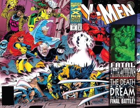 Oui ! C'est un poster qui est montage d'images provenant des titres mutants de l'époque ( année "1990" ) et affiché dans les comic-shops US en guise de pub.