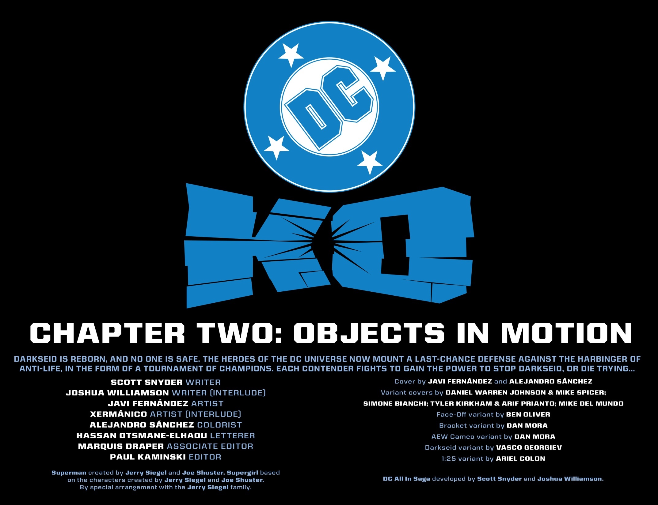 Scénaristes : Scott Snyder, Joshua Williamson Dessinateurs : Javier Fernandez, Xermanico, Alejandro Sanchez Dessinateurs de couverture : Javier Fernandez, Daniel Warren Johnson, Mike Del Mundo, Tyler Kirkham, Simone Bianchi, Vasco Georgiev, Ben Oliver, Dan Mora, Ariel Colon