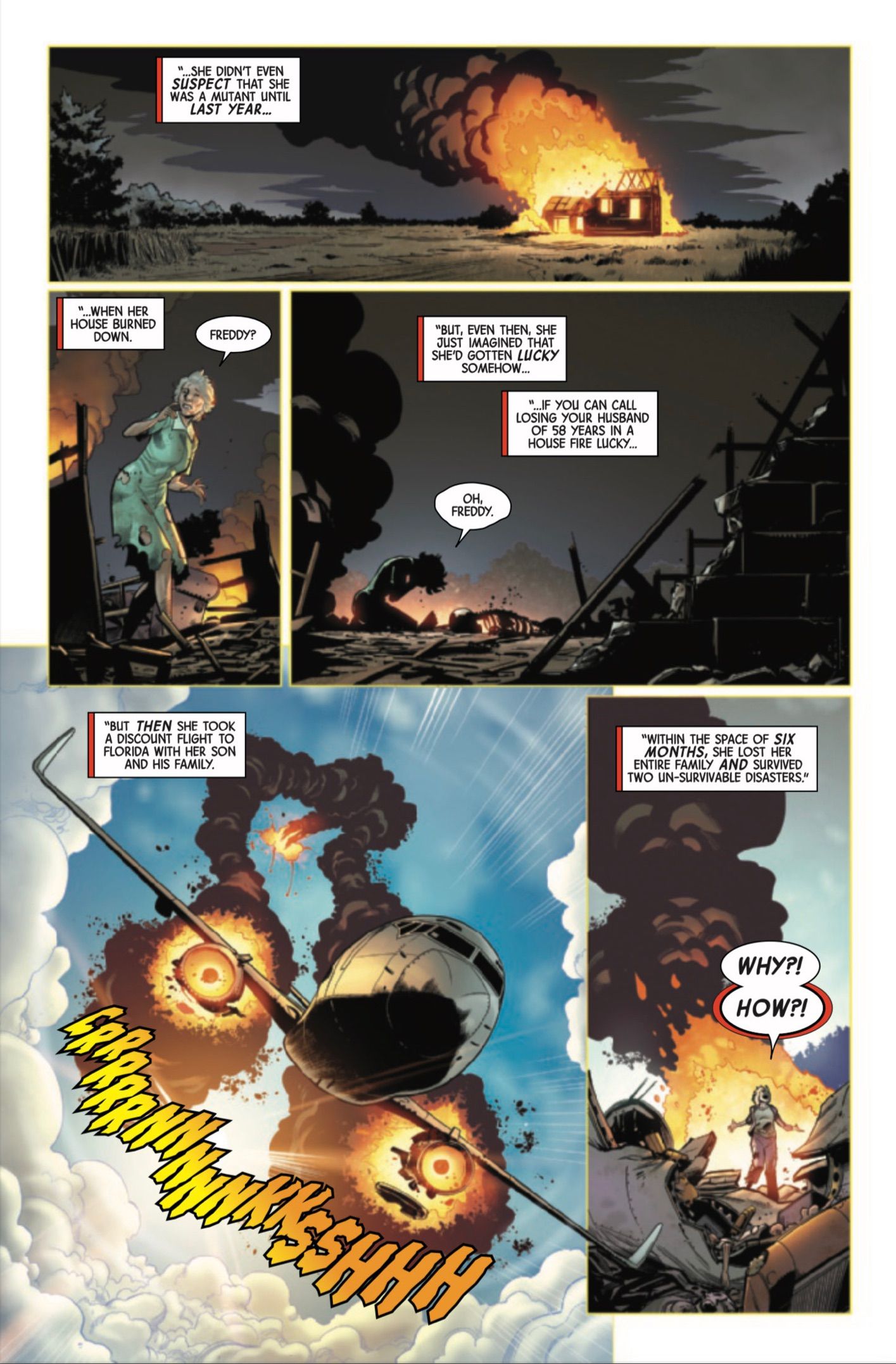 Histoire : Granny découvre très tardivement ses pouvoirs mutants (à plus de 80 ans) lors de deux accidents tragiques. Le premier est l'incendie de sa maison dans lequel son mari Freddy (bien plus jeune qu'elle mais 58 ans tout de même) trouva la mort. Le second, 6 mois plus tard, est le crash d'un avion à destination de la Floride dans lequel elle se trouvait avec son fils et le restant de sa famille. Seule survivante du crash elle comprit qu’elle était en fait invulnérable.
