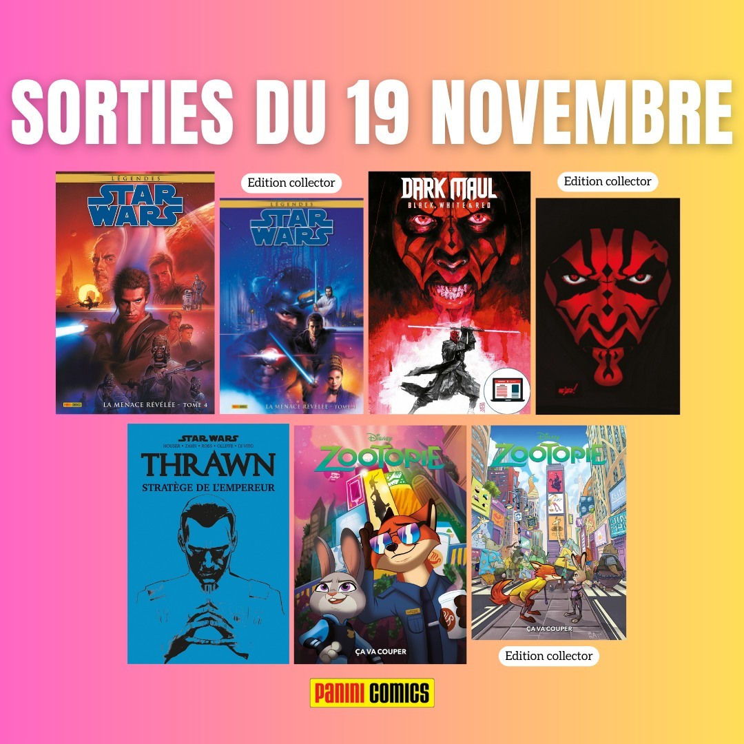 | Les sorties de la semaine avec notre premier titre Disney : la suite de Zootopie en comics avant l'arrivée du second film ! Mais aussi PLEIN de Star Wars, du World of Warcraft et une intégrale qui est sortie la semaine dernière mais qui n'était pas dans nos visuels (oups).