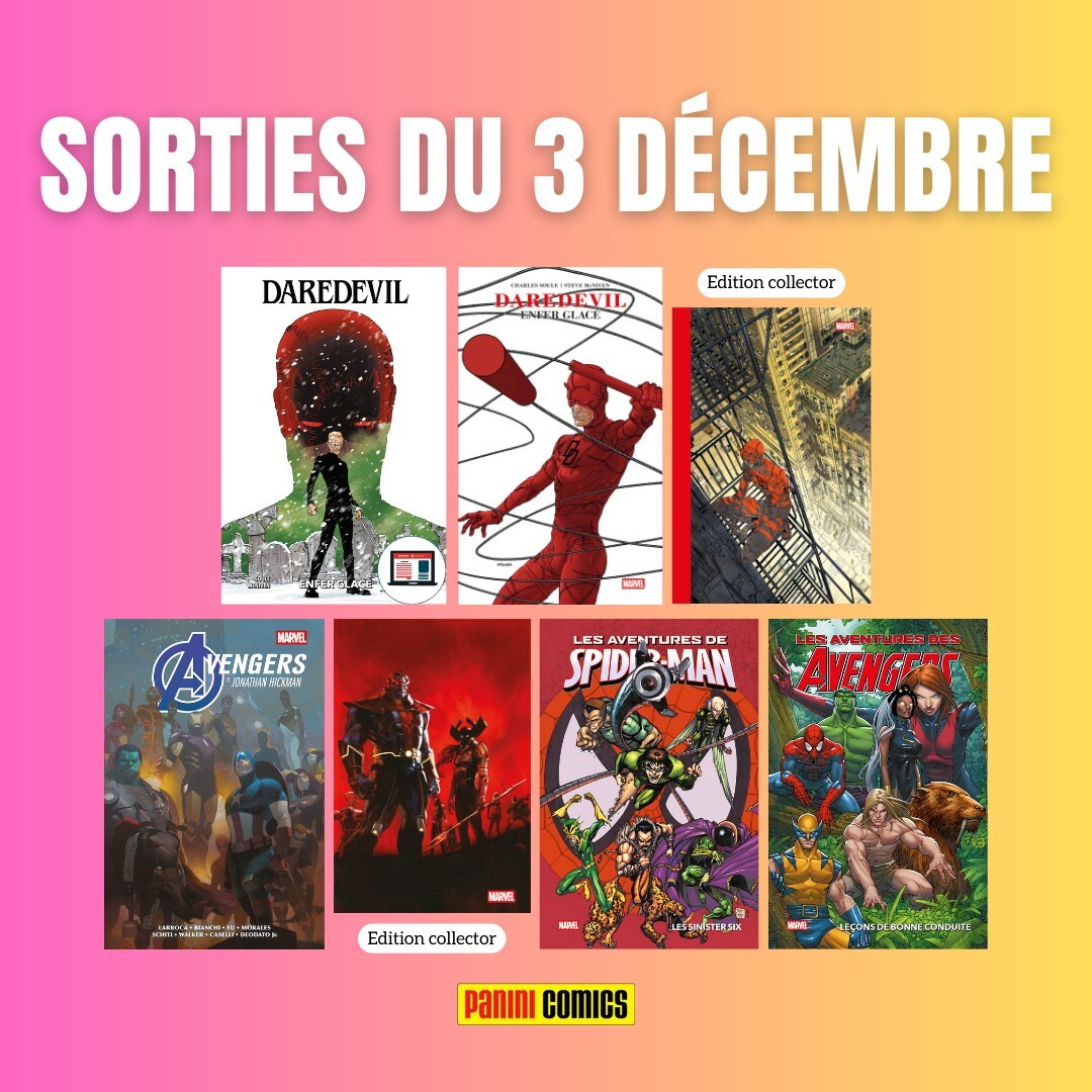 | CHECKLIST ! Retrouvez la checklist de décembre avec la suite des Deluxe de l'univers Ultimate, un Daredevil glaçant, des intégrales cultes et la seconde moitié du run d'Hickman sur ses Avengers en Omnibus ! Et en dehors de Marvel, découvrez la nouvelle série L'Héritage de Vador (avec une nouvelle vague de Star Wars Poche), du Conan ou le dernier volume de Magic Order !