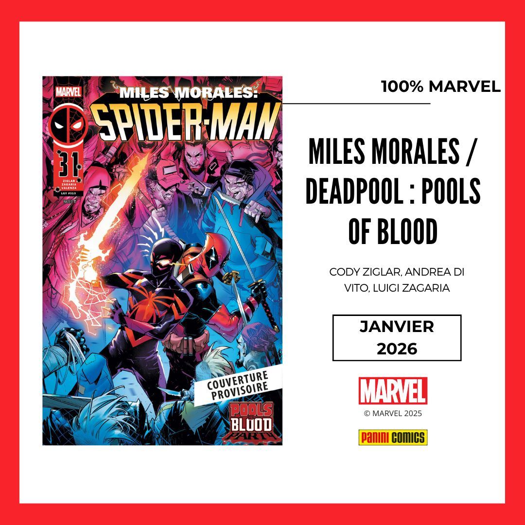 * Une double dose de DEADPOOL ! Vous étiez déjà au courant du tome crossover Miles Morales Deadpool : Bain de Sang grâce aux Big News mais la suite du côté de Wade sortira le même mois avec le troisième tome de la série de Cody Ziglar !