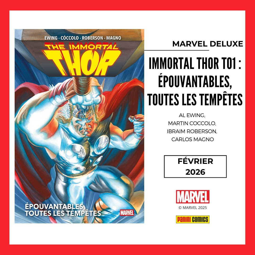 * Mais aussi du très récent avec un premier tome de 288 pages d'IMMORTAL THOR par Al Ewing, Martin Coccolo & cie. Une saga démesurée où Thor affronte aussi bien des ennemis terriens que les divinités primordiales venant d'Utgard !