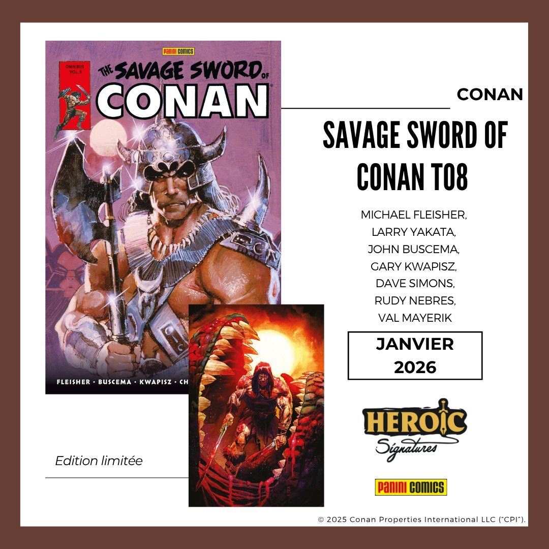 | 8ème Omnibus Savage Sword en moins de 3 ans, et voila c'est plié, les 8 omnibus de Marvel sont en vf désormais Ce volume 8 regroupe les années 84-85, John Buscema a quitté la série même s'il dessine le one-shot sur le film de 84 dispensable ce volume 8, si vous devez en n'acheter qu'un, prenez le volume 2 le meilleur de tous les 4 premiers omnibus savage sword regroupent toutes les adaptations de Howard, le top