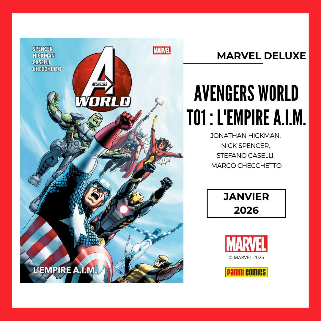 * Parfait complément aux séries Avengers de Jonathan Hickman désormais disponibles en Omnibus, AVENGERS WORLD T1 (sur 2) d'Hickman, Spencer, Caselli & Cecchetto raconte comment les Avengers et le SHIELD s'associent pour lutter contre trois terribles menaces !