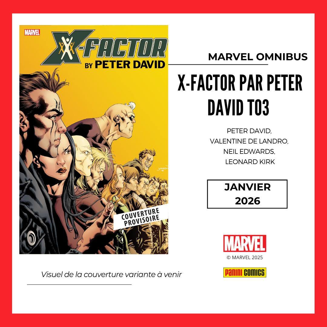 * Enfin, 3e tome (sur 4) pour le X-FACTOR de Peter David ! Et ce n'est pas tout : on profite de l'occasion pour recruter de nouveaux lecteurs avec une offre Prix Découverte pour les tomes 1 & 2 ! En effet, on le sait depuis le début : reproposer la série X-Factor en 4 Omnibus est un pari. Mais un pari qu'on était prêt à faire au vu de la qualité fabuleuse du titre ! Cependant, pour le moment vous avez été assez peu à vous lancer dans l'aventure. Comme on veut absolument amener la série à son terme, on vous propose donc le tome 1 à 50€ et le tome 2 à 60€ pour vous inviter à (re)découvrir l'une des plus belles pages de l'histoire mutante !