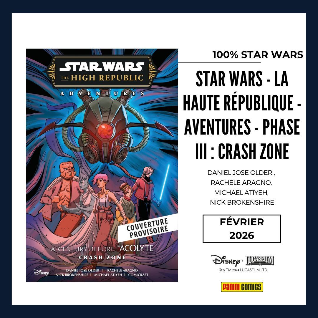 * Du côté de STAR WARS, on vous proposera notamment deux titres de LA HAUTE REPUBLIQUE avec un des derniers tomes de la PHASE III avec le one-shot AVENTURES : CRASH ZONE centré sur le personnage important de Crash que vous avez déjà croisé dans cette PhaseIII mais aussi un STAR WARS OMNIBUS consacré aux comics Marvel de la PHASE I (donc la série régulière + 2 mini-séries) !