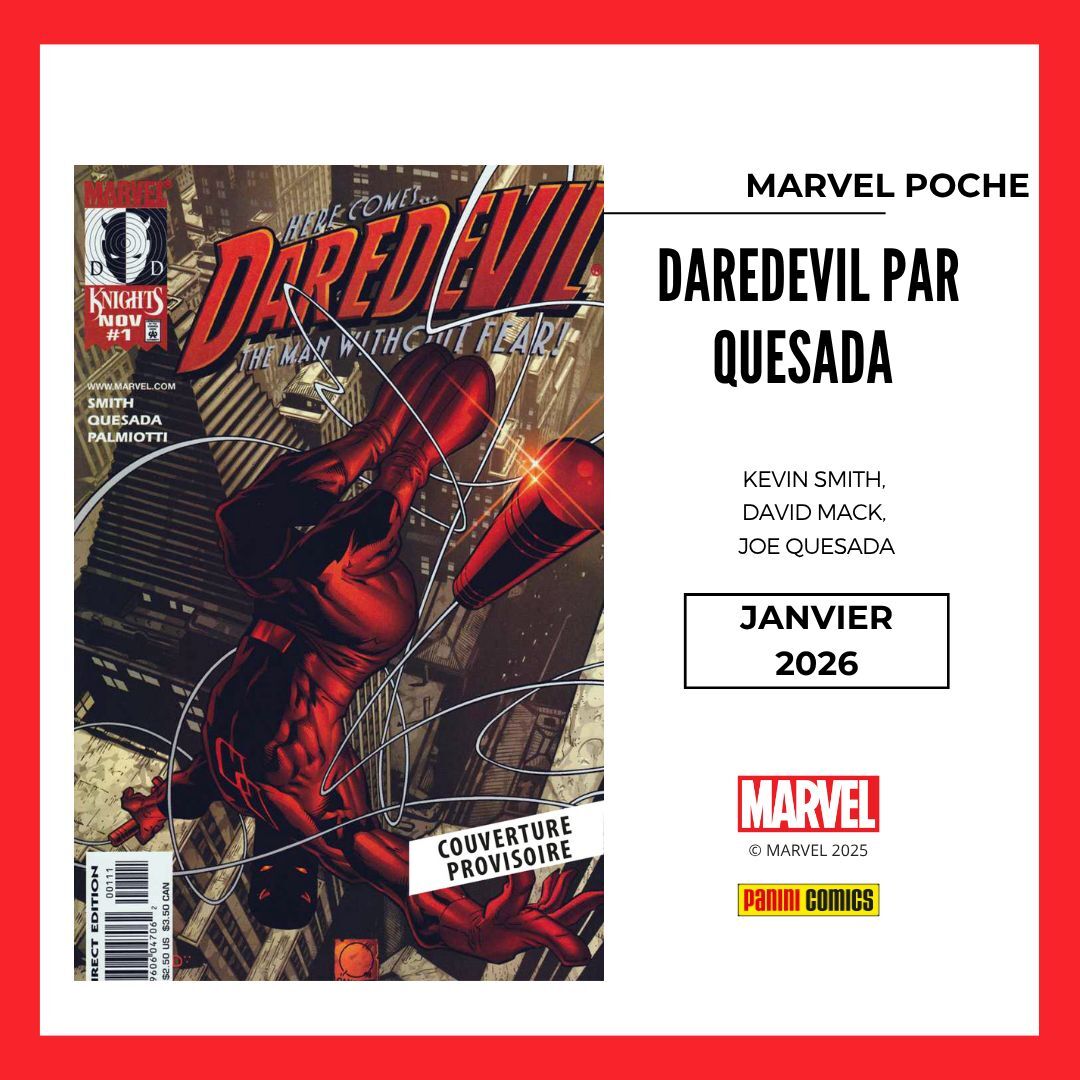 * D'un côté c'est un nouveau MARVEL POCHE avec 400 pages de DAREDEVIL par JOE QUESADA, Kevin Smith & David Mack (avec donc les épisodes 0 à 15 de la série) !