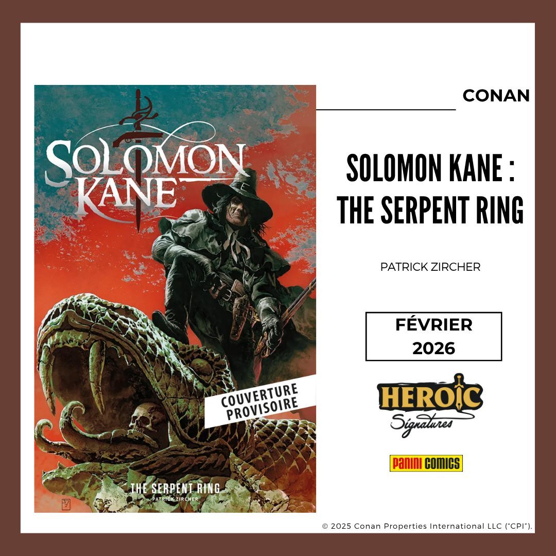 * Et de l'autre, un récit complet sur SOLOMON KANE par Patrick Zircher ! Vous avez d'ailleurs pu déjà voir Patch Zircher travailler sur Kane dans la nouvelle série SSoC dont le tome 1 est sorti cet été et c'est ici un tout nouveau récit inédit et la première fois depuis plus de 15 ans qu'une aventure du personnage est publiée en France !