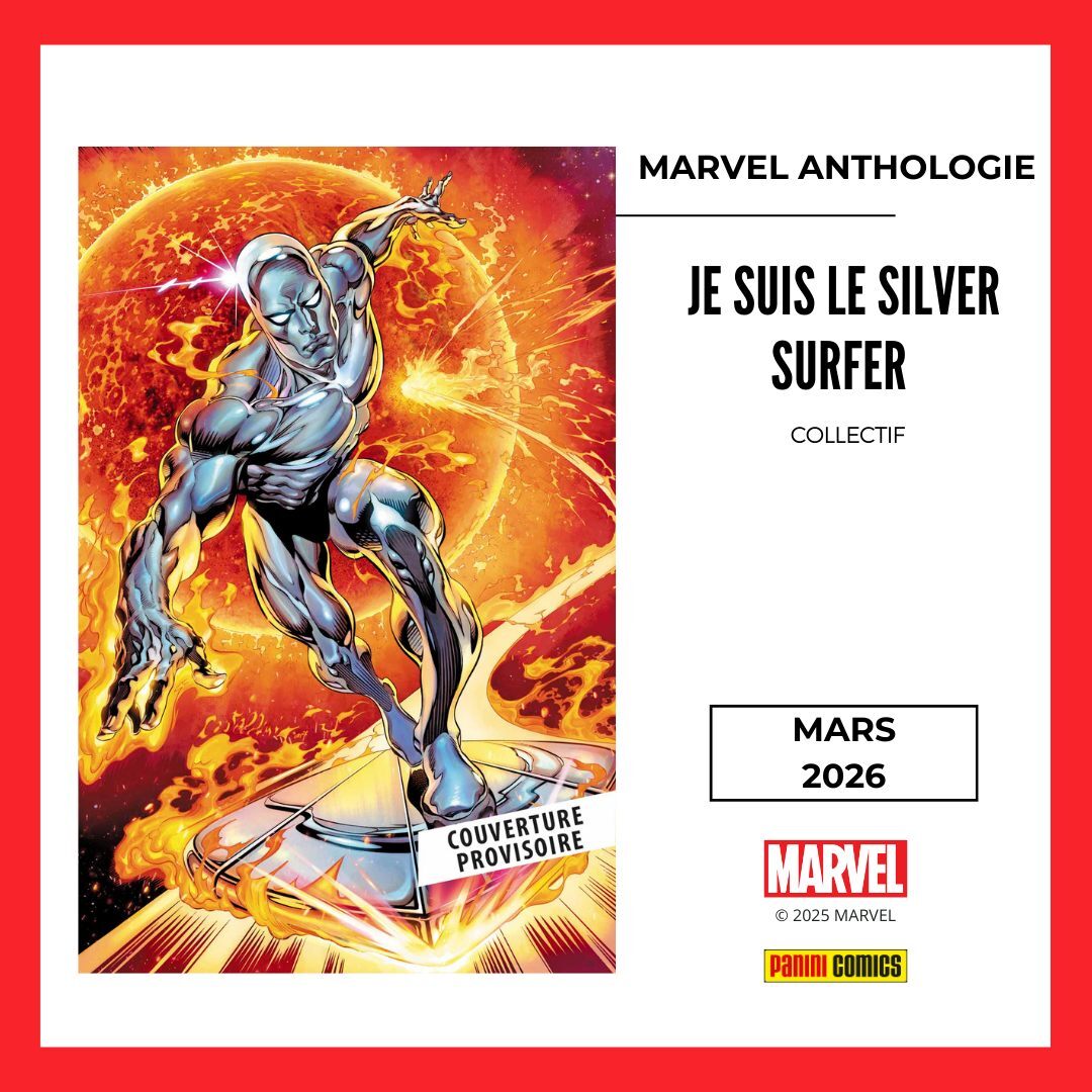 * Norrin Radd rejoint la collection Anthologie avec JE SUIS LE SILVER SURFER où l'on retrouve sa première apparition après la trilogie Galactus, le lancement de sa première série solo, des rencontres avec Spider-Man ou Daredevil, l'épisode 200 avec Dawn Greenwood et des récits rares et précieux. Par Stan Lee, Jack Kirby, John Buscema, Dan Slott, Steve McNiven, Mike Allred, etc.