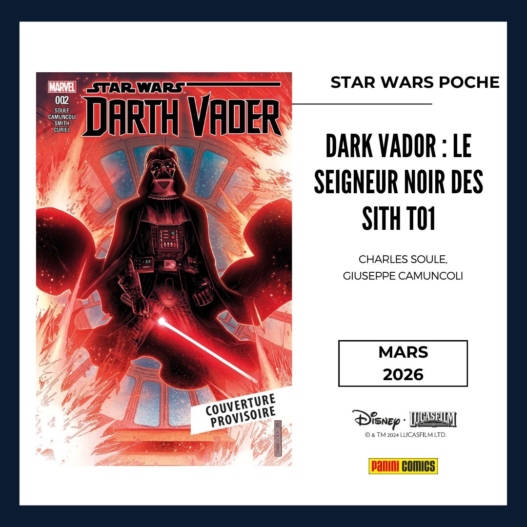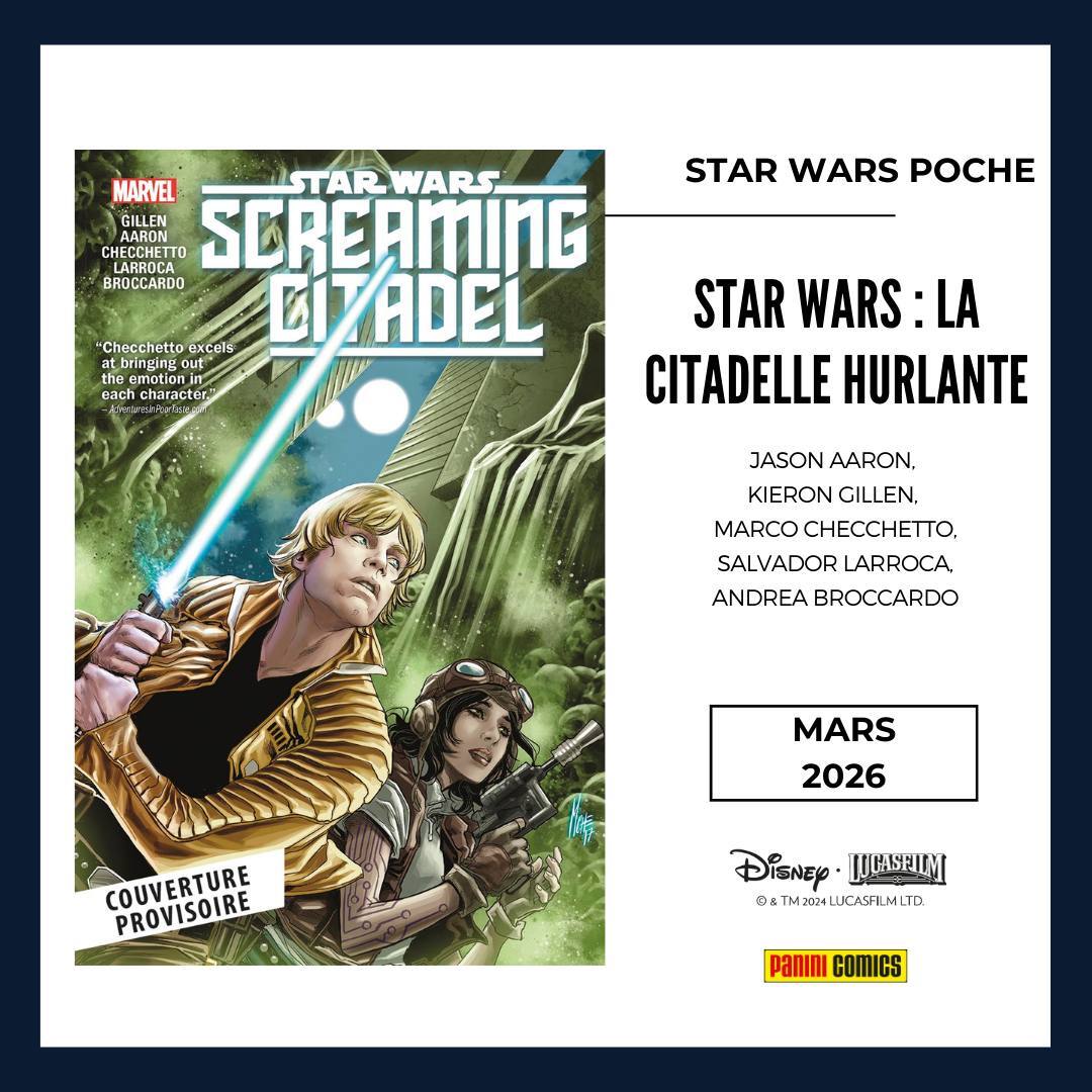 * Et du côté des STAR WARS POCHE, vous pouvez retrouver la série Star Wars en crossover avec Dr Aphra avec le tome one-shot STAR WARS : LA CITADELLE HURLANTE tandis que la série DARK VADOR : LE SEIGNEUR NOIR DES SITH de Soule & Camuncoli se déroulant juste après La Revanche des Sith sera publiée en 2 tomes !