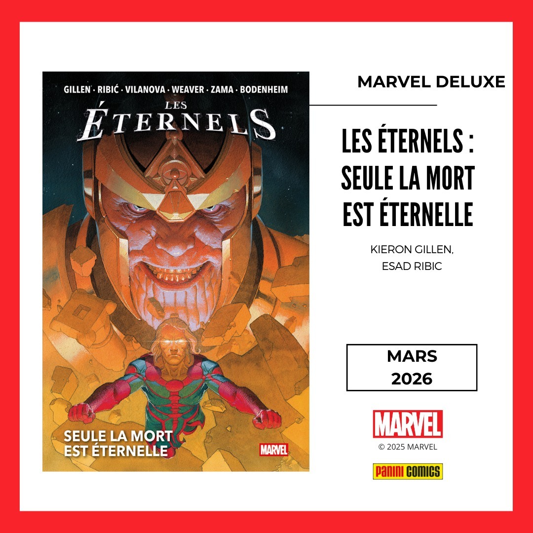 * Et toujours au mois de mars, c'est une intégrale de la série ETERNELS de Kieron Gillen, Esad Ribic & co. Donc un volume de plus de 350 pages avec Eternals 1-12 et les 3 one-shots (Thanos Rises, Celestia et The Heretic) !