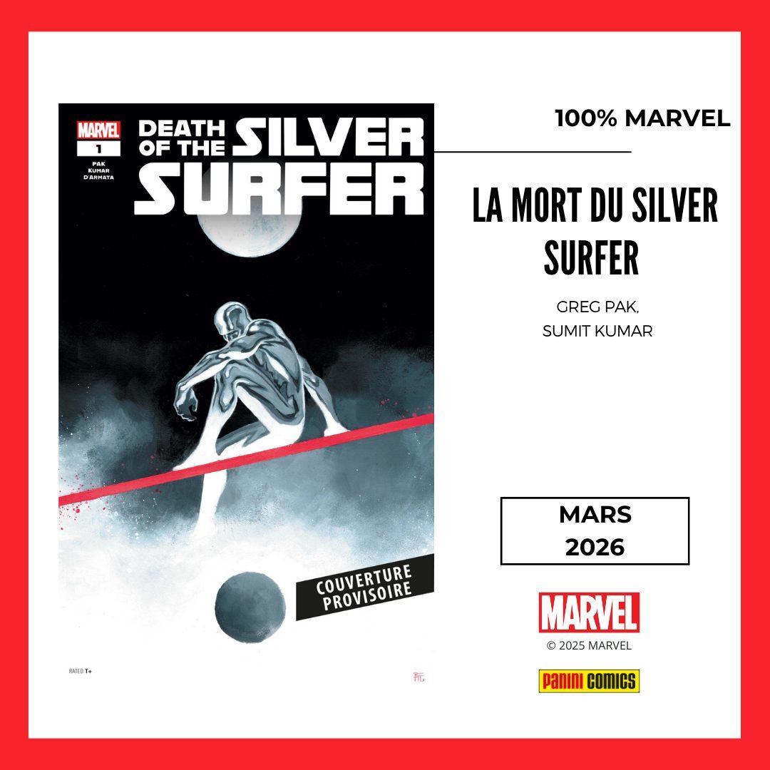 * Enfin de l'inédit avec le récit récent (et en continuité !) LA MORT DU SILVER SURFER par Greg Pak et Sumit Kumar (et avec de magnifiques couvertures de Dike Ruan).