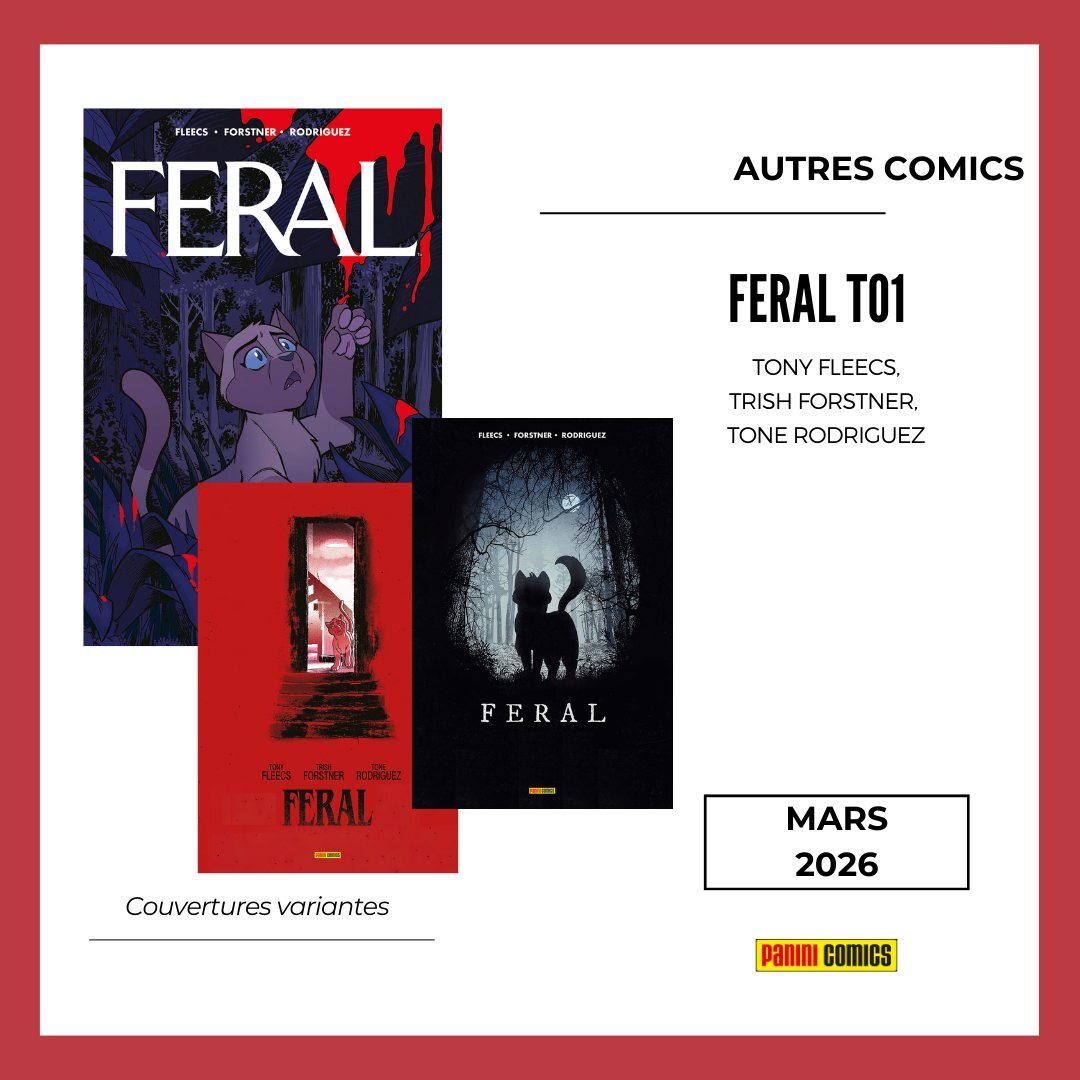 * En mars, le tome 1 de FERAL, la nouvelle petite perle de Tony Fleecs et Trish Forstner : après Stray Dogs, le duo revient cette fois ci pour un récit au long cours centré sur des chats ! L'horreur n'est jamais très loin et est peut être encore plus viscérale que dans Stray Dogs. Pour l'occasion, on vous propose deux variantes qui mettent à l'honneur deux films d'horreurs qui se sont imposés comme des classiques modernes : Barbares et The VVitch.