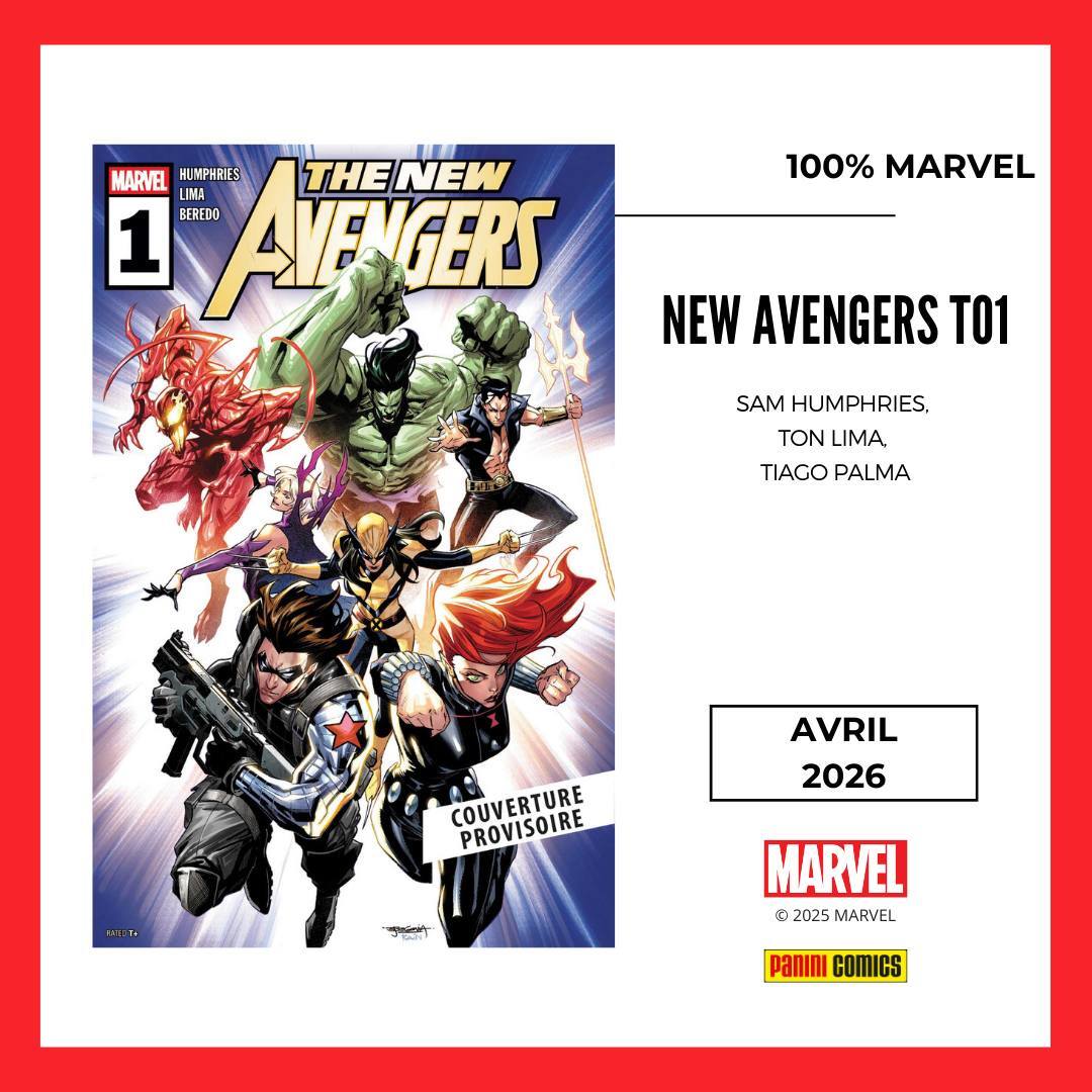 * Et Carnage, Wolverine, Cléa, Hulk, Bucky ou encore Namor et Black Widow forment les...NEW AVENGERS ?! Une équipe inattendue qui va combattre un groupe de nouveaux ennemis....pourtant très familiers ! Sam Humphries signe ici, avec Ton Lima et Tiaco Palma, une série extrêmement fun et au ton 100% Marvel !
