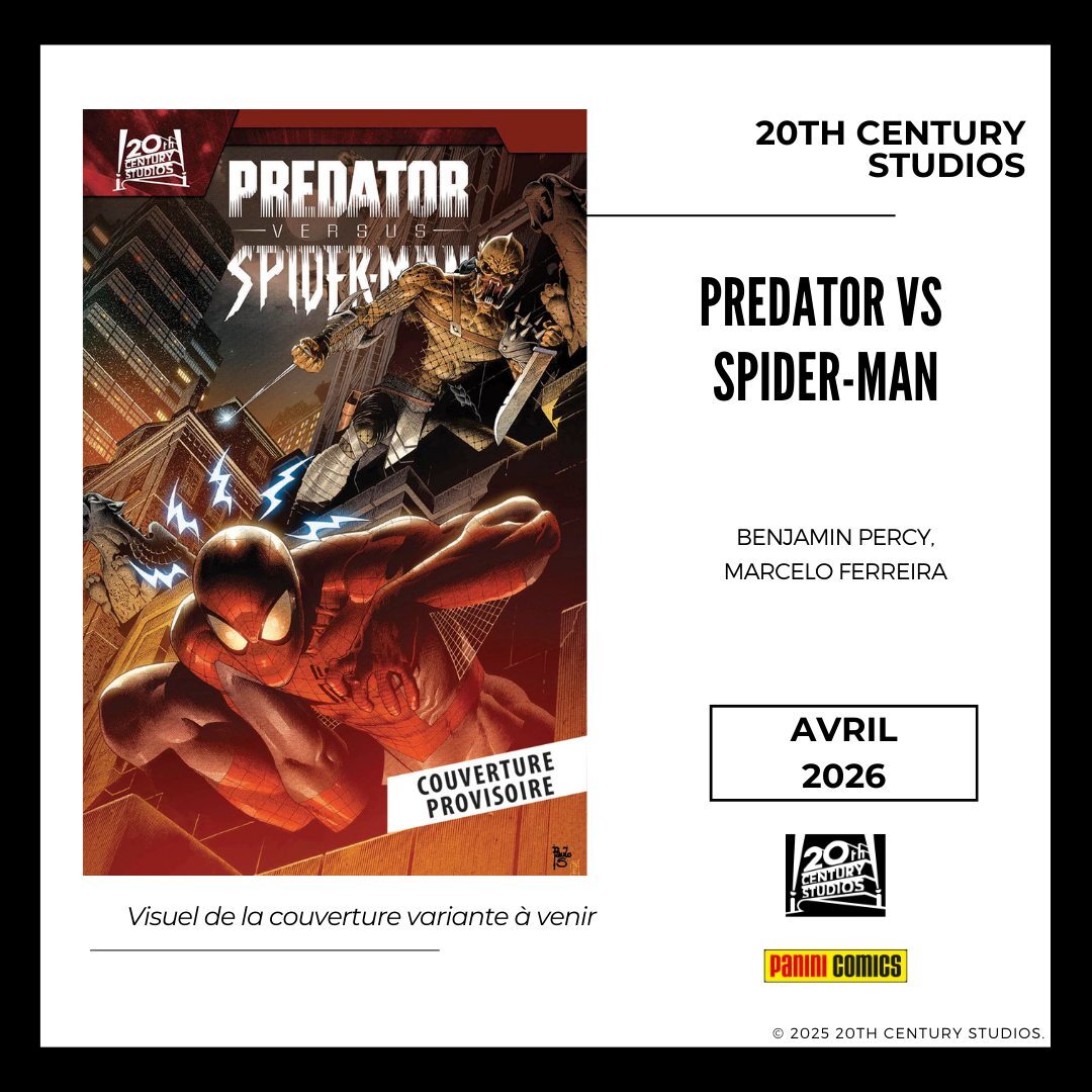 * Et en avril, le récit complet PREDATOR VS. SPIDER-MAN de Ben Percy et Marcelo Ferreira où Spidey va devoir affronter un Yautja au comportement unique dans une ville de New York écrasée par la canicule...