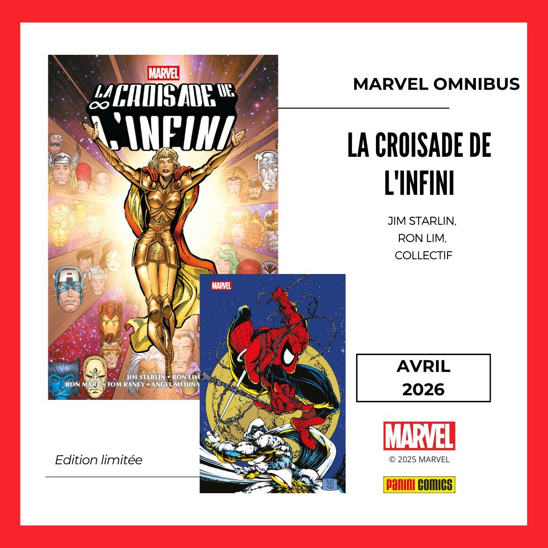 * Et le même mois, vous retrouverez également Thanos au casting de l'OMNIBUS : LA CROISADE DE L'INFINI de Starlin, Lim & co ! Un volume de plus de 1000 pages qui inclus Infnity Crusade, Warlock Chronicles et Warlock & the Infinity Watch mais aussi 33 épisodes de séries comme Alpha Flight, Web of Spider-Man, Thor, Dr Strange ou Moon Knight avec 90% d'inédits VF !