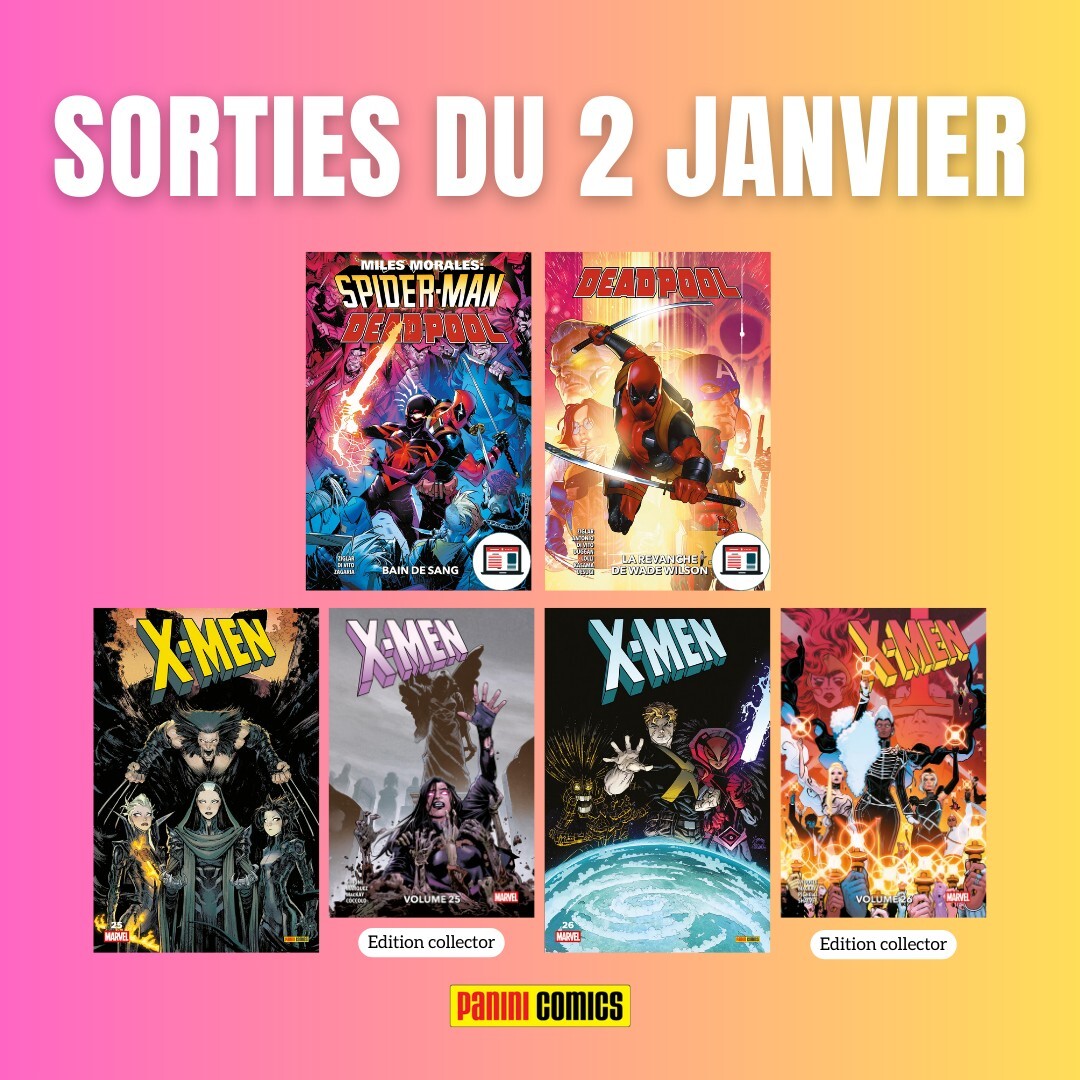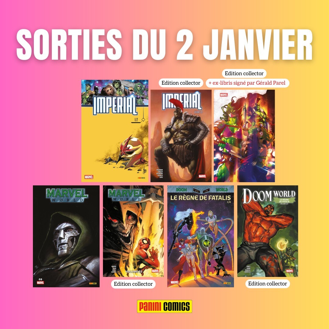 * Les 100% autour de Deadpool (Miles Morales/Deadpool et le T3) * Et tous les périodiques du mois ! C'est à dire les deux numéros de X-MEN, le duo MARVEL WORLD et DOOM WORLD mais aussi la première moitié de l'event cosmique IMPERIAL !